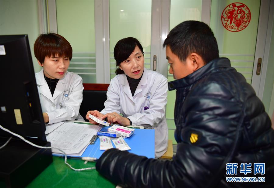 2月22日,陕西省人民医院宁养院副主任杨滋渊(中)向患者家属讲解用药的注意事项。 陕西省人民医院宁养院是一家免费为贫困的晚期癌症患者提供镇痛治疗、护理指导、心理舒缓等宁养服务的医疗慈善机构,该宁养院的医护人员十年如一日地出诊上门看望病人,累计为5000多名患者提供宁养服务。 新华社记者 邵瑞 摄