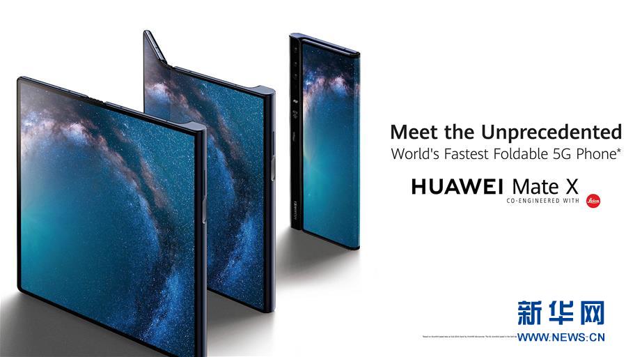 这是华为公司2月24日发布的华为Mate X手机海报。 华为公司24日在西班牙巴塞罗那举行产品发布会,首次推出基于第五代移动通信技术(5G)的商用手机Mate X。这款智能手机采用折叠屏设计,其搭载的多模5G芯片被誉为“华为最强”。 新华社发
