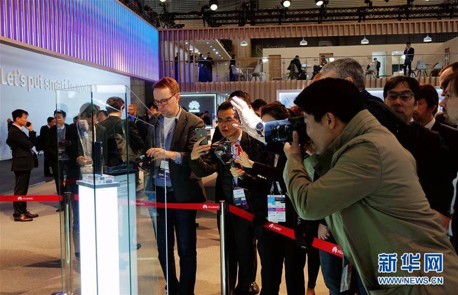 2月25日,在西班牙巴塞罗那,参观者在世界移动通信大会华为展台拍摄华为Mate X手机。 华为公司24日在西班牙巴塞罗那举行产品发布会,首次推出基于第五代移动通信技术(5G)的商用手机Mate X。这款智能手机采用折叠屏设计,其搭载的多模5G芯片被誉为“华为最强”。 新华社记者郭求达摄