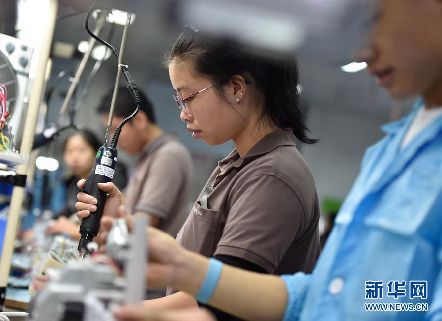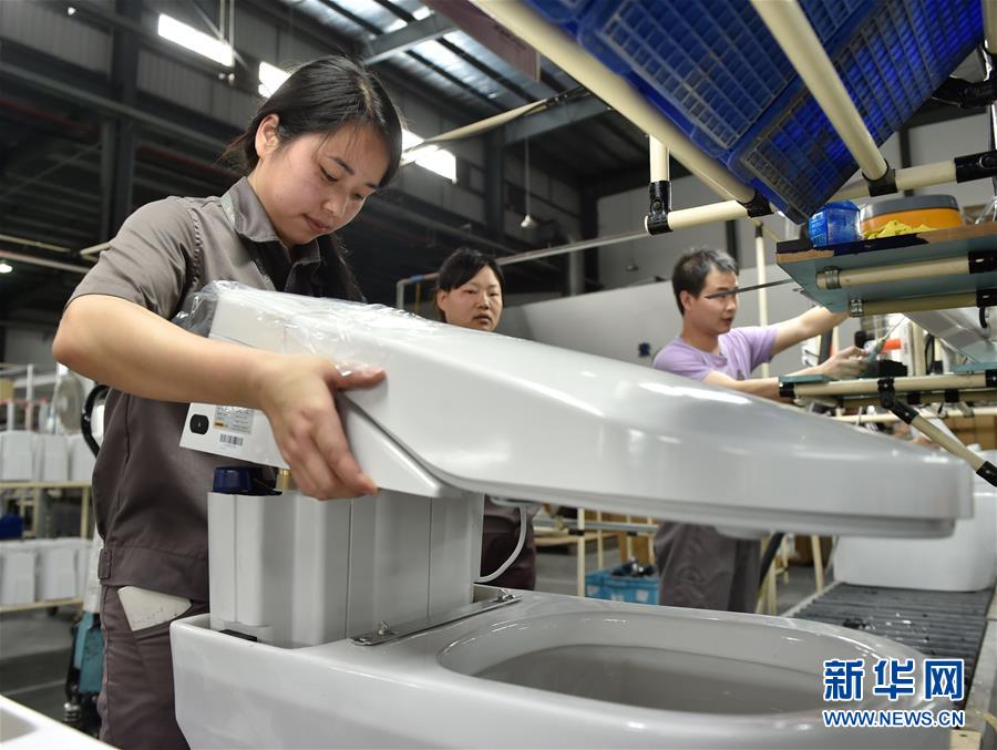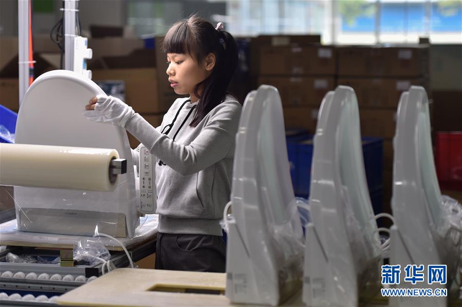 在位于福建省南安市的九牧卫浴,工人在组装智能马桶盖(2016年5月10日摄)。 新华社记者 宋为伟摄