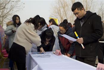 2月27日,求职者在南和县“春风行动”扶贫专场招聘会现场了解用工信息。 当日,河北省南和县举办“春风行动”贫困劳动力转移就业专场招聘会,200余家用人单位进场招聘,提供各类就业岗位2万余个。此次招聘会以“促进转移就业,助力脱贫攻坚”为主题,积极为广大用工企业及求职者搭建人才对接供需平台。 新华社记者 朱旭东 摄