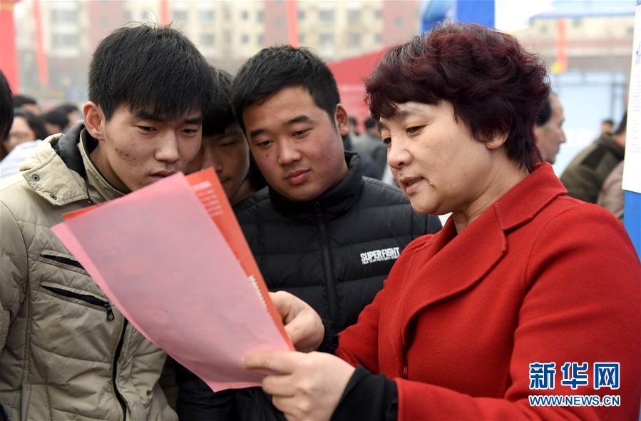 2月27日,在南和县“春风行动”扶贫专场招聘会现场,用人单位工作人员为求职者讲解国家就业创业相关政策。 当日,河北省南和县举办“春风行动”贫困劳动力转移就业专场招聘会,200余家用人单位进场招聘,提供各类就业岗位2万余个。此次招聘会以“促进转移就业,助力脱贫攻坚”为主题,积极为广大用工企业及求职者搭建人才对接供需平台。 新华社记者 朱旭东 摄
