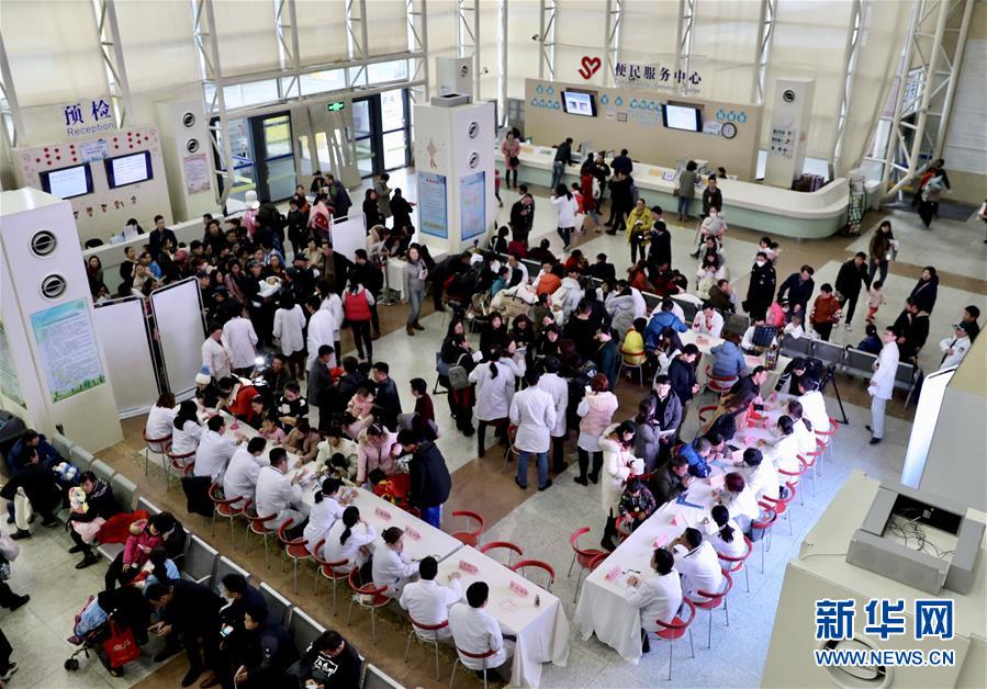 2月27日在复旦大学附属儿科医院门诊大厅拍摄的罕见病义诊现场。 当日,为迎接2019年国际罕见病日,复旦大学附属儿科医院举行儿童罕见病义诊活动。 新华社记者 刘颖 摄