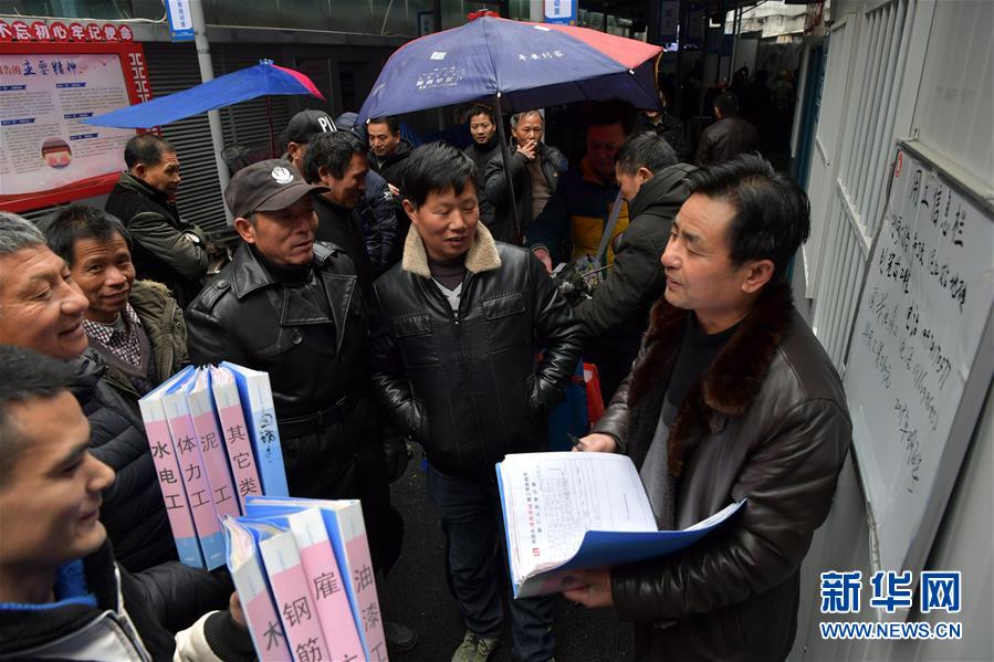 2月27日,在江西省南昌市西湖区丁公路街道“散工超市”,一位工头向工友们发布招工信息。 近年来,为了更好地服务外来务工人员,江西省南昌市西湖区着力打造“散工超市”,为务工人员提供一个兼具招工信息发布、休息娱乐功能的场所。“散工超市”自开办以来日均接待外来务工人员超过200名,成为务工人员的“暖心之家”。 新华社记者 彭昭之 摄
