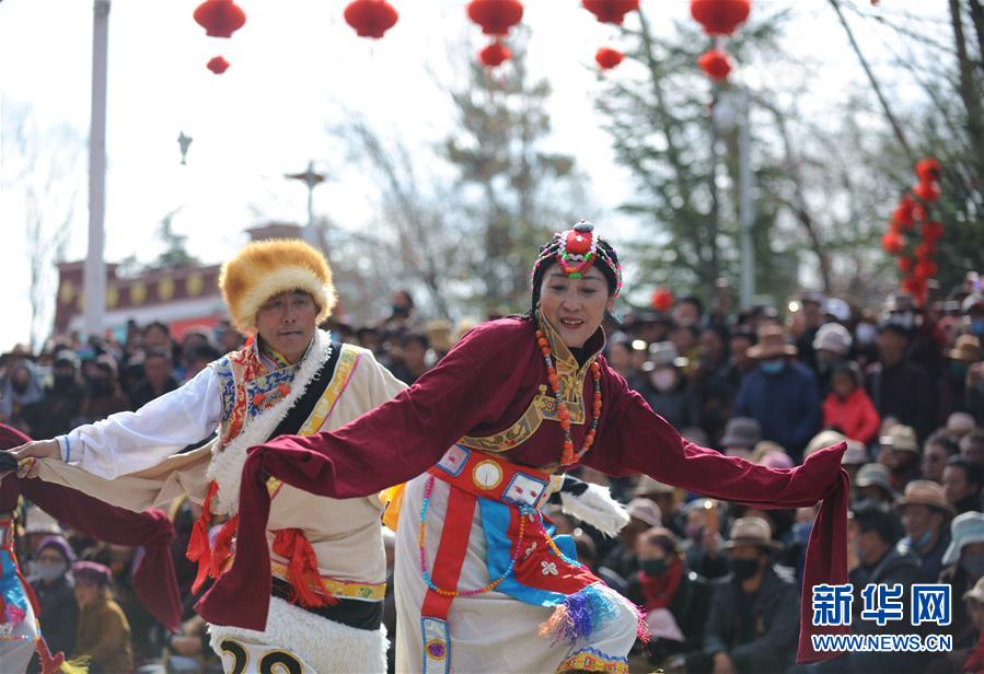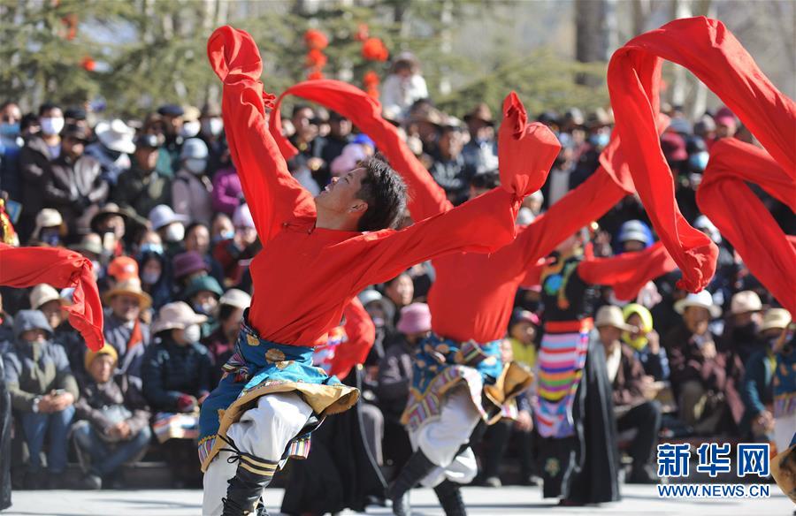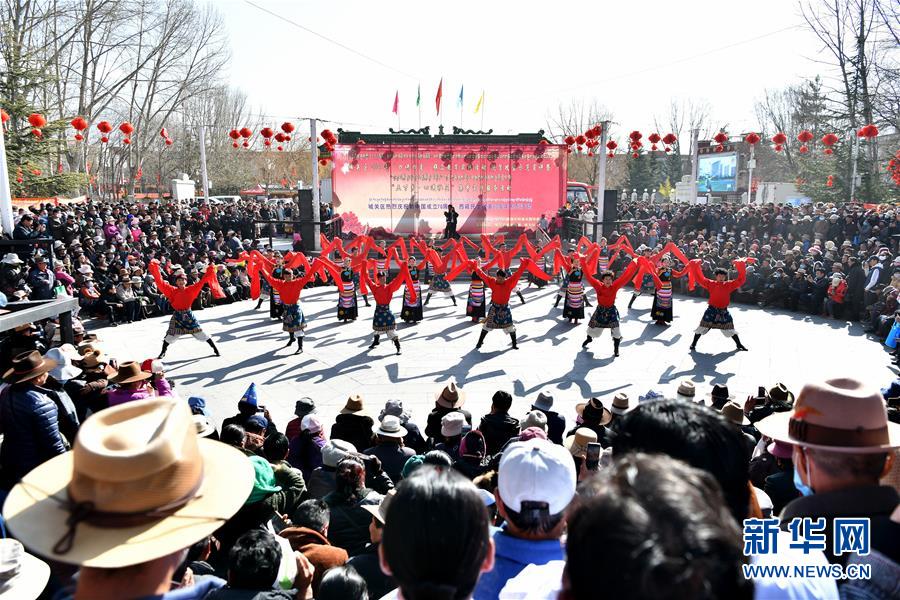 这是活动启动仪式上的文艺表演(2月27日摄)。 2月27日,拉萨市城关区2019年“四讲四爱”群众教育实践活动脱贫攻坚示范宣讲暨“五下乡·四进社区”集中宣传服务活动启动。 新华社记者 晋美多吉 摄