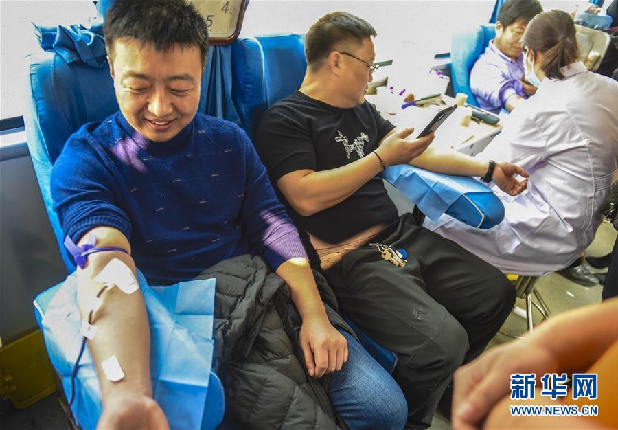 2月28日,景县爱心志愿者在献血车上无偿献血。当日,河北景县组织开展“捐献青春热血、点燃生命之光”无偿献血和志愿捐献造血干细胞活动。工作人员现场向群众发放相关宣传资料,爱心志愿者纷纷加入到献血队伍中。 新华社记者 李晓果 摄