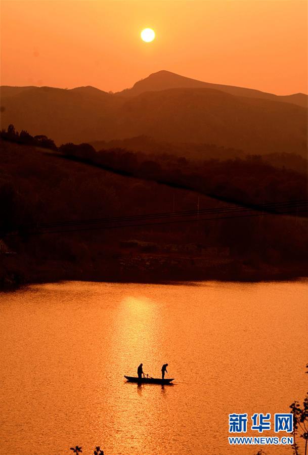 在山东省沂源县悦庄镇娄峪水库,河湖管理员在清理水面(2018年4月26日摄)。近年来,山东省沂源县对境内河流、水库、塘坝实行定片、定段、定点的网格化管理,加快推进水生态文明建设。 新华社发(赵东山 摄)