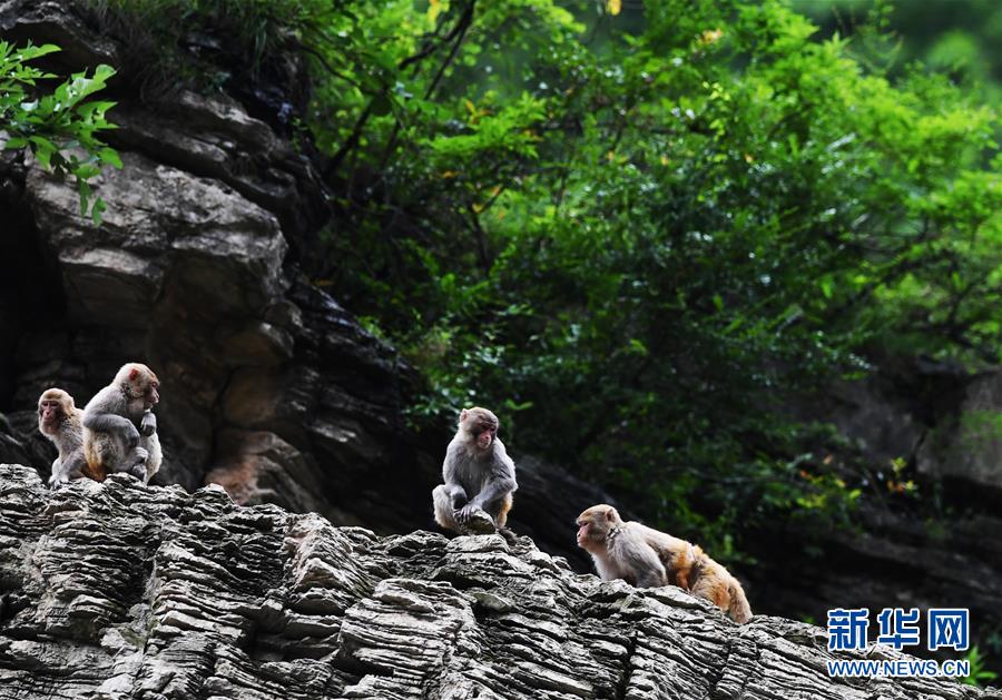 这是2018年5月26日拍摄的巫山小三峡岸边的野生猕猴。近年来,巫山小三峡景区两岸森林植被和生态环境持续改善,吸引越来越多的野生猕猴聚集于此。 新华社记者 王全超 摄