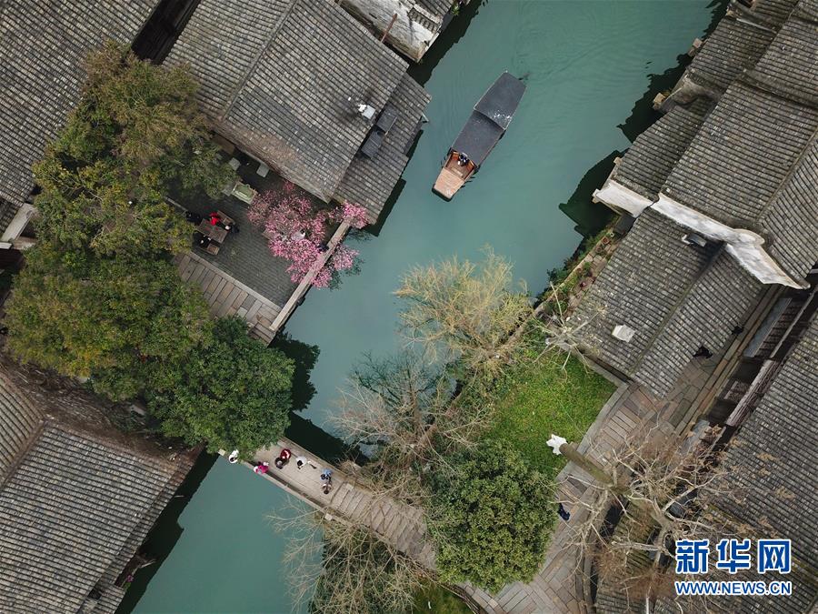 2月25日,游人在浙江省桐乡市乌镇景区游览观光(无人机拍摄)。 新华社记者 翁忻旸 摄