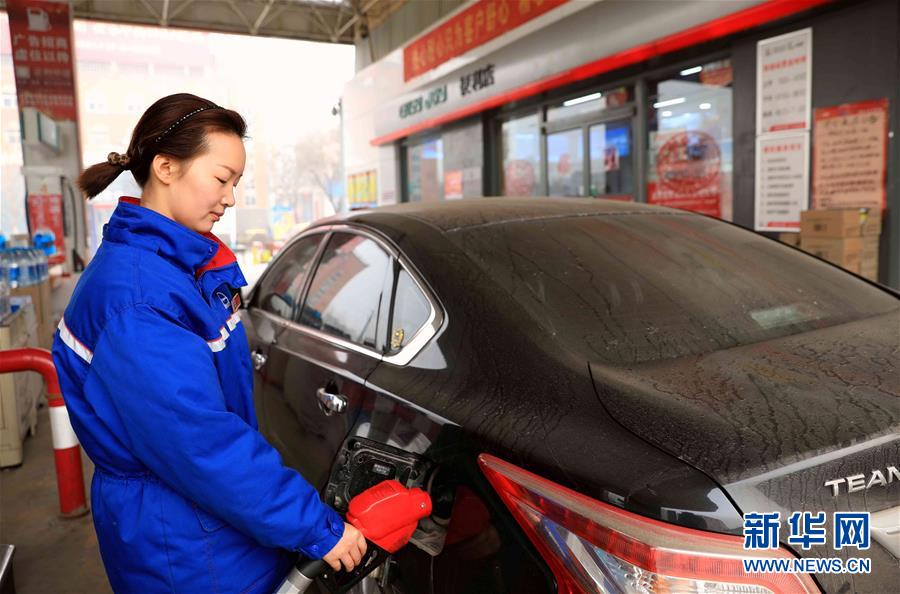2月28日,在石家庄新乐市一处加油站,工作人员在给车辆加油。 国家发展改革委28日发布消息,根据近期国际市场油价变化情况,按照现行成品油价格形成机制,自2019年2月28日24时起,国内汽油、柴油价格每吨分别提高270元和260元。 新华社发(贾敏杰 摄)