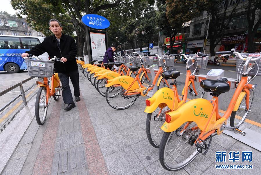 2月28日,市民推着自行车“小黄人”准备上路骑行。 为了推动“多彩交通、多元文化”的古城特色交通,让居民和游客出行更便捷、街巷更畅通,福建省泉州市构建“公交+慢行”的交通方式,打造公交“小蓝”、社区巴士“小白”、自行车“小黄人”等多彩的公共交通,受到市民和游客的喜爱。 新华社记者林善传摄