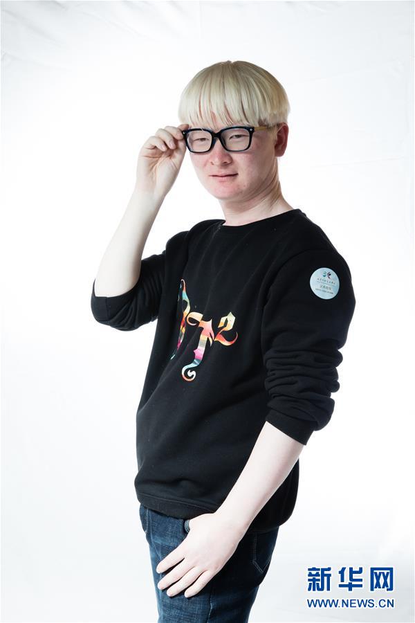 谢航程,26岁,白化病患者 2015年,一次偶然的机会,谢航程被介绍进一个白化病友群。“进群以后对自己有了更多的了解,看到了和自己一样的伙伴,并且参与组织了两次病友聚会,接触到了很多优秀的‘月亮孩子’,很受鼓舞。”2017年谢航程来到北京加入了一支乐队,“找到了自己存在的价值和意义。” 新华社记者 金立旺 摄