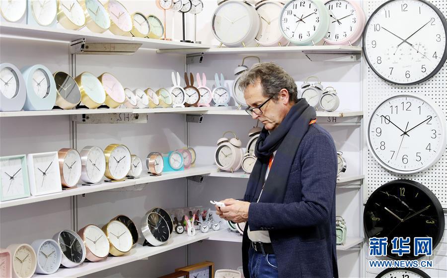 3月1日,一位国外客商在一家钟表企业展位上查看展品。 当日,第29届中国华东进出口商品交易会在上海新国际博览中心开幕。 新华社记者 方喆 摄