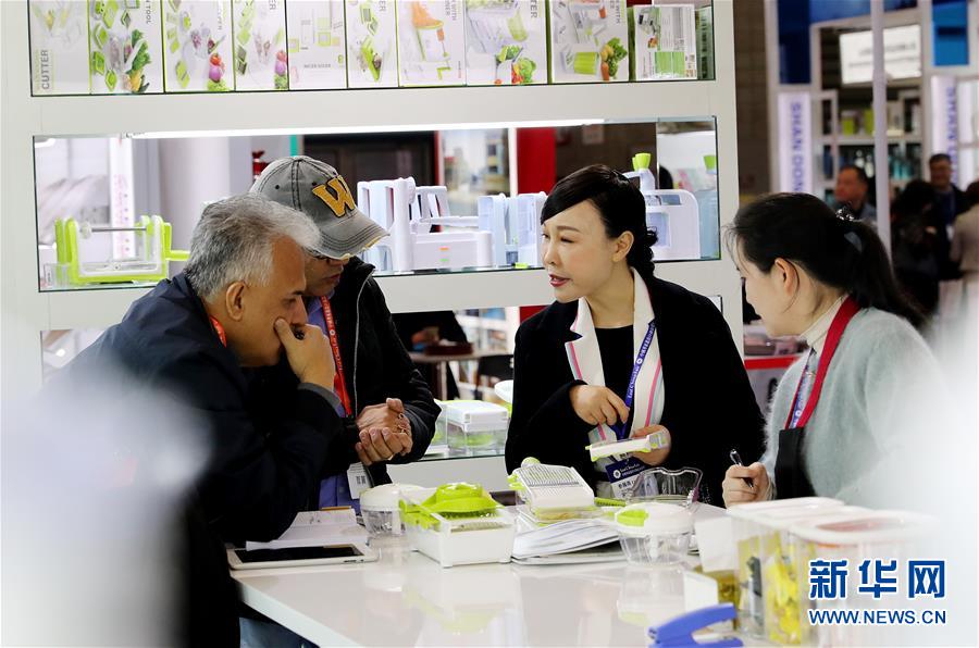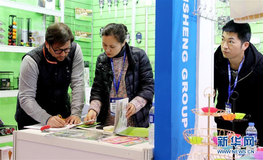 3月1日,参展商(中)在向国外客商介绍产品信息。 当日,第29届中国华东进出口商品交易会在上海新国际博览中心开幕。 新华社记者 方喆 摄