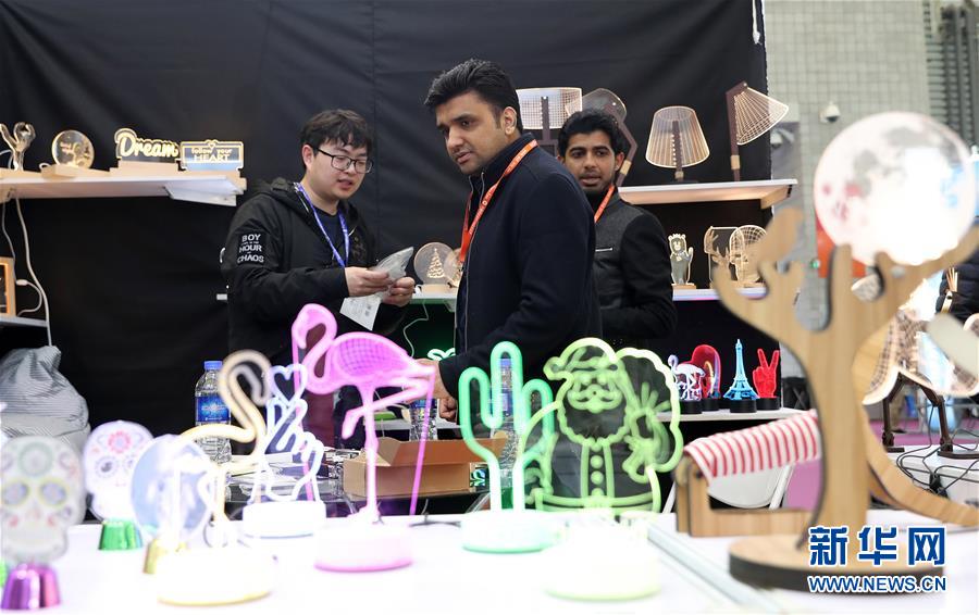 3月1日,国外客商在一家创意灯具企业展位前驻足观看。 当日,第29届中国华东进出口商品交易会在上海新国际博览中心开幕。 新华社记者 方喆 摄
