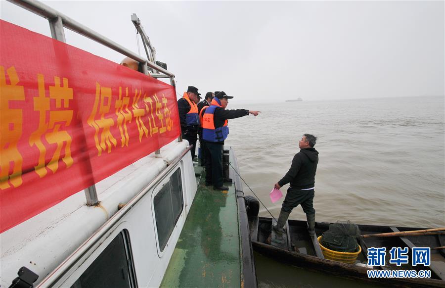 3月1日,江苏省渔政、公安、海事等部门执法人员在长江上开展联合执法行动。 3月1日零时起,长江、珠江、淮河、钱塘江、闽江以及海南内陆水域进入为期4个月的禁渔期。 新华社发(苏渔 摄)