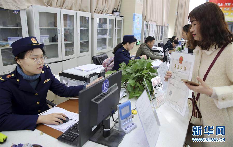 3月1日,安徽省淮北市相山区政务服务中心工作人员为市民换发新版营业执照。从3月1日起,全国市场监管部门将为准予设立登记、变更登记以及补发营业执照的各类市场主体,统一颁发新版营业执照。 新华社发(李鑫 摄)
