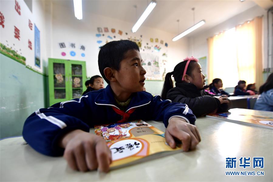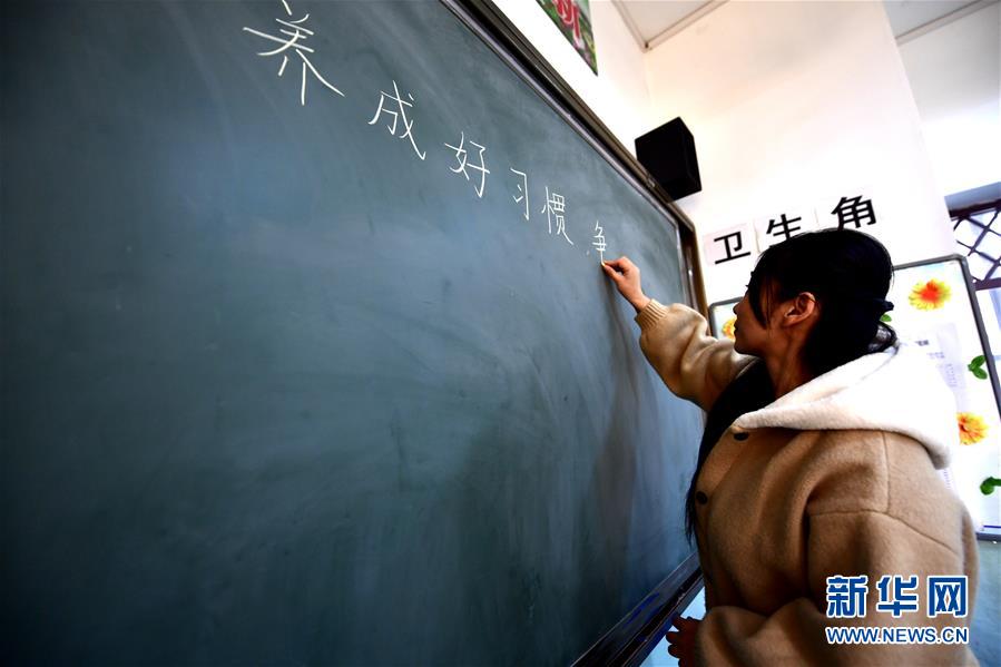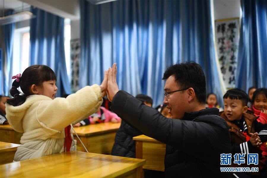 3月1日,在西宁市大通回族土族自治县新庄镇台其庄教学点,教师黎晖为学生讲授开学第一课。 当日,青海省西宁市各中小学迎来开学日。 新华社发(张龙 摄)