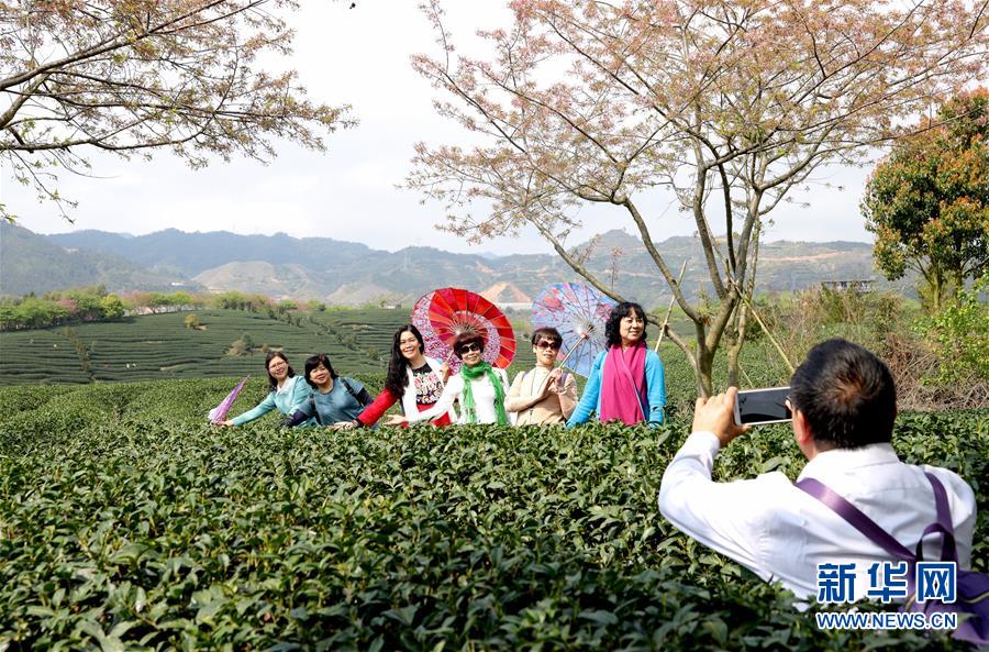 3月1日,游客在永福镇台品樱花茶园拍照。 福建省漳平市永福镇是福建重要花卉产地,花卉种植面积达3.5万亩。近年来,永福镇以花卉产业及茶产业为依托,大力发展乡村休闲旅游,带动当地农民增收致富。 新华社记者 姜克红 摄