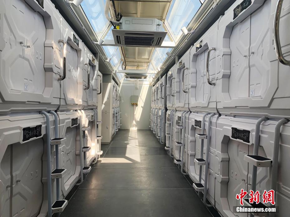 3月1日晚,冷湖“火星营地”开营仪式暨火星营地研学之旅在青海省海西州茫崖市冷湖地区举行,标志着中国首个火星模拟基地建成投运。“火星营地”占地面积约80亩,可同时容纳60人睡眠舱住宿,100人帐篷住宿。图为营地“太空舱”。中新社记者 孙睿 摄