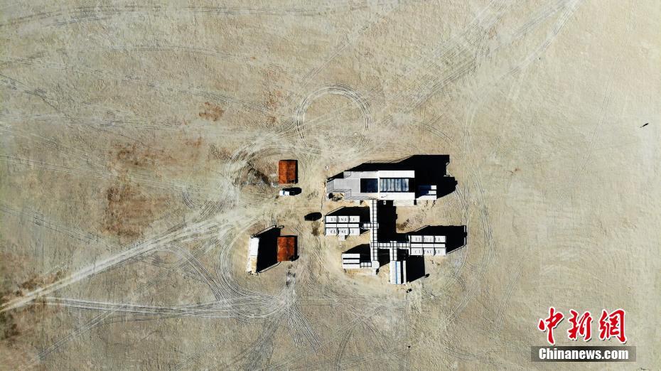 3月1日晚,冷湖“火星营地”开营仪式暨火星营地研学之旅在青海省海西州茫崖市冷湖地区举行,标志着中国首个火星模拟基地建成投运。“火星营地”占地面积约80亩,可同时容纳60人睡眠舱住宿,100人帐篷住宿。图为俯瞰“火星营地”。中新社记者 孙睿 摄