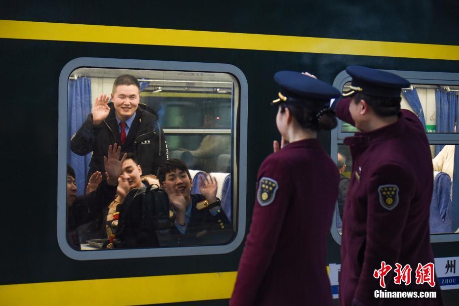 3月1日,江西南昌,值乘完春运最后一趟K442次列车的实习生与列车长告别。鲍赣生 摄