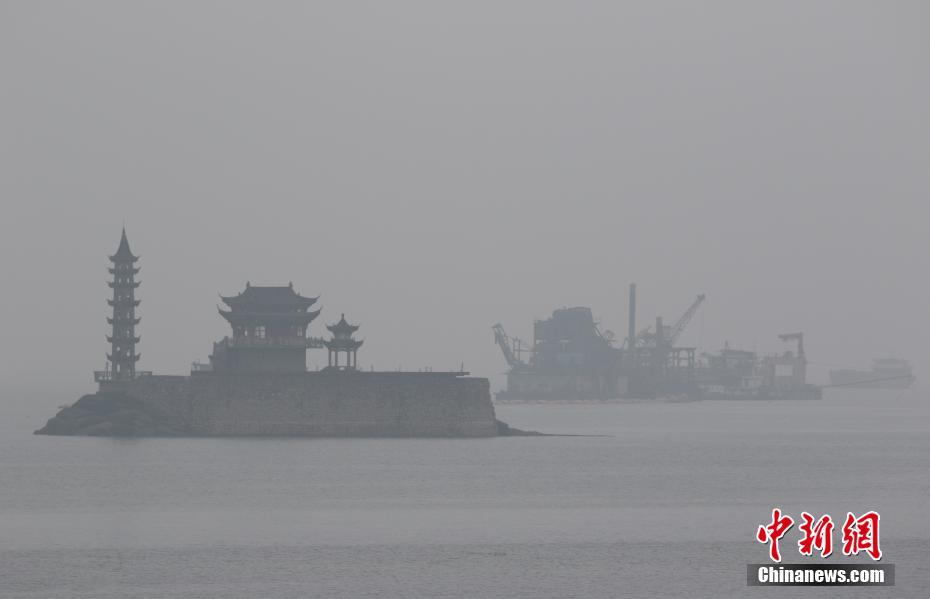 江西省庐山市境内鄱阳湖区重要的地标性建筑“落星墩”又重新淹入水中。魏东升 摄