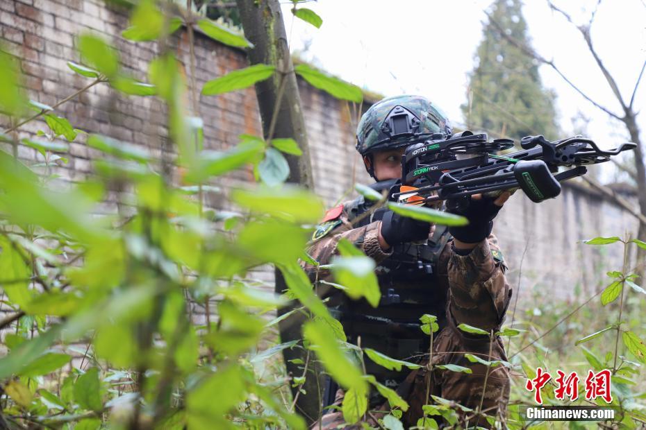 弓弩,作为已有千年历史的作战冷兵器,在现代战场中依旧延续着它的作用。武警贵州省总队某支队“90后”特战队员周亨,经过5年的高强度训练,使他在集训中脱颖而出,被选拔为弓弩手。图为3月1日周亨在丛林中训练。中新社记者 瞿宏伦 摄