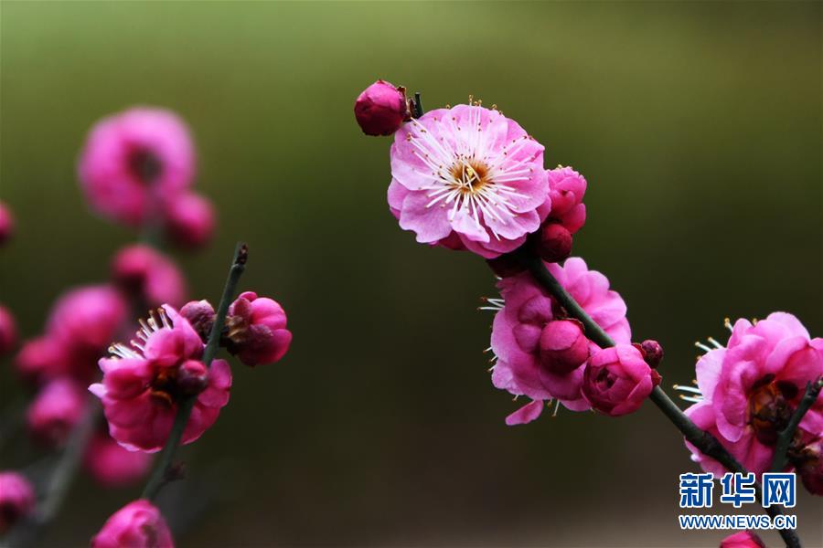 3月3日在山东省枣庄市山亭区拍摄的盛开的红梅。 时值早春,次第绽放的梅花暗香浮动,展露春意。 新华社发(李宗宪 摄)