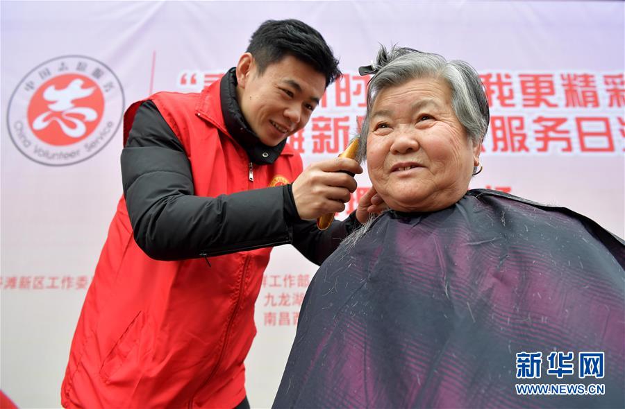 3月5日,在江西省南昌市红谷滩新区凤凰洲志愿服务集散中心,志愿者为社区居民义务理发。当日是第56个学雷锋纪念日,江西省南昌市红谷滩新区开展“奉献新时代,有我更精彩”志愿服务活动,来自社会各界的志愿者为当地社区居民提供小家电维修、义诊、免费理发、安全知识宣传等内容的志愿服务。 新华社记者 彭昭之 摄