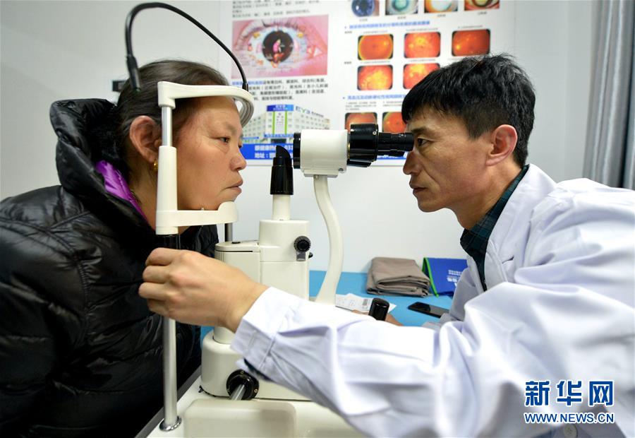 3月5日,在邯郸市复兴区中医院,医生为失独老人检查视力。当日,河北省邯郸市复兴区组织开展“与爱同行,传递温暖”主题活动,为失独家庭老人提供免费体检、健康咨询等服务。新华社记者 王晓 摄