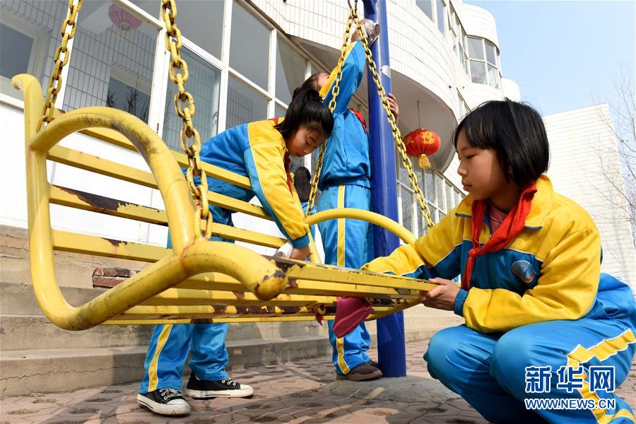 3月5日,河北省南和县新区小学学生在南和县中心敬老院打扫卫生。当日是第56个学雷锋纪念日,全国各地开展形式多样的志愿服务活动,用行动弘扬雷锋精神。新华社记者 朱旭东 摄