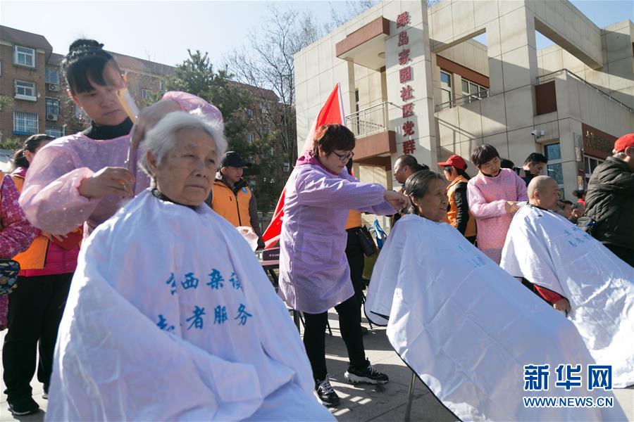 3月5日,在北京市门头沟区大峪街道,志愿者为市民义务理发。当日是第56个学雷锋纪念日,全国各地开展形式多样的志愿服务活动,用行动弘扬“雷锋精神”。新华社发(侯继庆 摄)