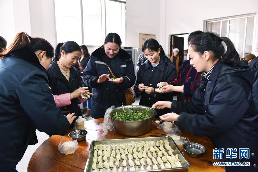 3月5日,在广西龙胜各族自治县长寿幸福院,志愿者为老人包饺子。当日是第56个学雷锋纪念日,全国各地开展形式多样的志愿服务活动,用行动弘扬“雷锋精神”。新华社发(吴生斌 摄)