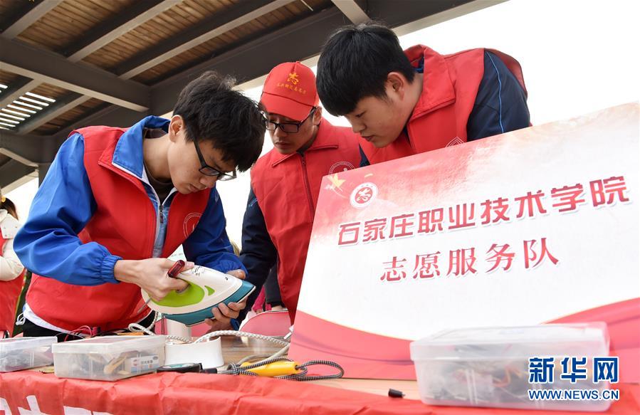 3月5日,在河北省石家庄市桥西区雷锋广场,大学生志愿者为市民现场维修小家电。当日是第56个学雷锋纪念日,全国各地开展形式多样的志愿服务活动,用行动弘扬“雷锋精神”。新华社发(张晓峰 摄)