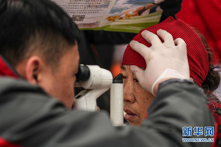 3月5日,在葫芦岛市文化广场举行的辽宁省“跟着郭明义学雷锋”爱心奉献集中活动现场,志愿者为市民免费进行检查。