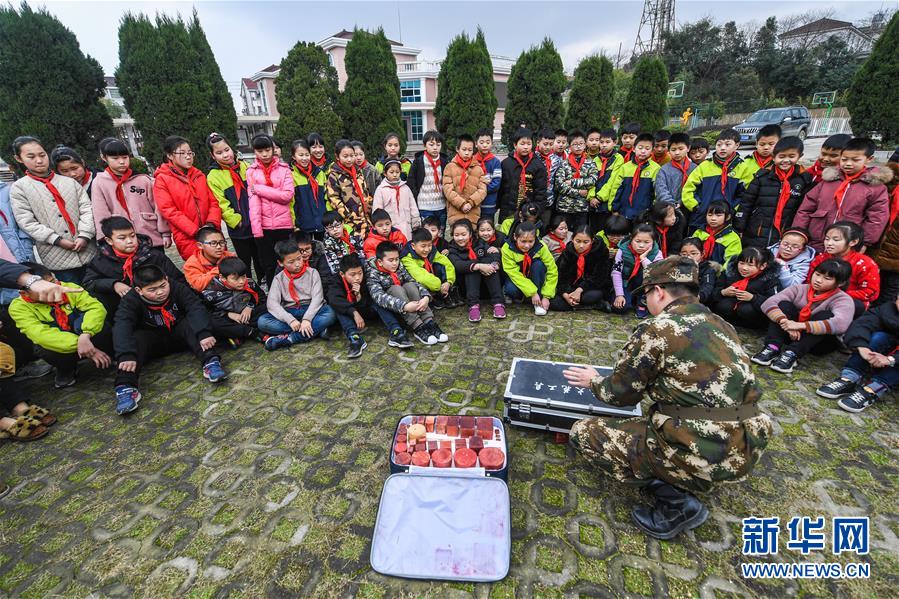 3月6日,东林镇消防应急救援队的队员给小学生们讲解不同救援设备的功能。当日,浙江省湖州市吴兴区东林镇东林小学举行“开学第一课”消防安全进校园活动。东林镇消防应急救援队的队员们通过普及消防安全知识、应急逃生知识等内容,让学生们了解日常消防安全常识,增强消防安全意识。新华社记者 徐昱 摄