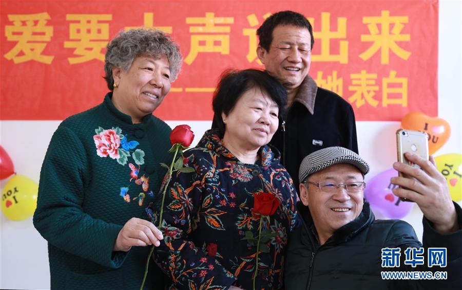 3月7日,居民在河北邢台市桥东区中北社区举行的迎接“三八”国际妇女节活动上自拍留念。 当日,河北省邢台市桥东区中北社区开展“爱要大声说出来——向我的她表白”活动,迎接“三八”国际妇女节。 新华社发(张驰 摄)