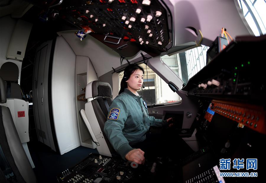 3月5日,蒋丹丹在飞行试验机驾驶舱进行科训。新华社记者 刘潇 摄