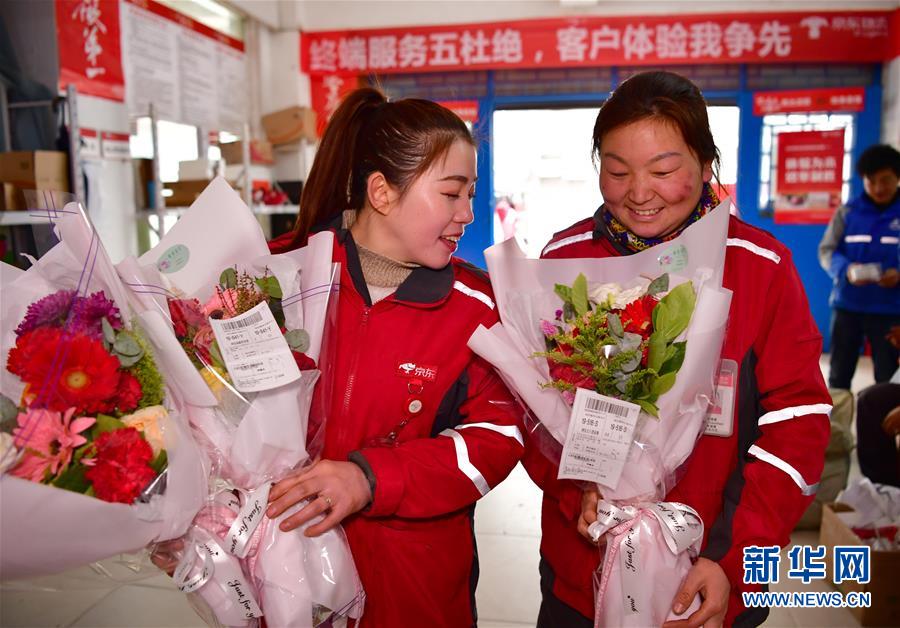 “三八”妇女节临近,京东物流西安太白营业部的女站长康亚玲、女配送员李春玲和闫展展收到男同事递来的几束鲜花——通过她们的手,这些来自网络订单的鲜花将会按时送到指定的客户手中。 康亚玲所在的快递站点日均处理约2700个包裹,李春玲和闫展展每人日均送货数量在100件以上,高峰时段送货数量还会增加很多。“在我们眼里,包裹没有大小轻重之分,每一件都是沉甸甸的责任。”康亚玲说。