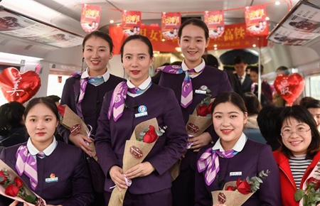 3月6日,“三八”妇女节即将到来之际,宁晋县第五中学学生为郭现蕊老师送上鲜花。