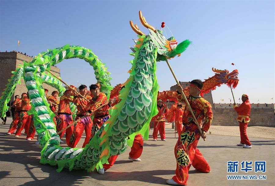 3月8日,在河北秦皇岛市山海关老龙头景区,民间艺人在表演舞龙。 当日是农历二月初二,各地举办丰富多彩的民俗活动。 新华社发(王寒植 摄)