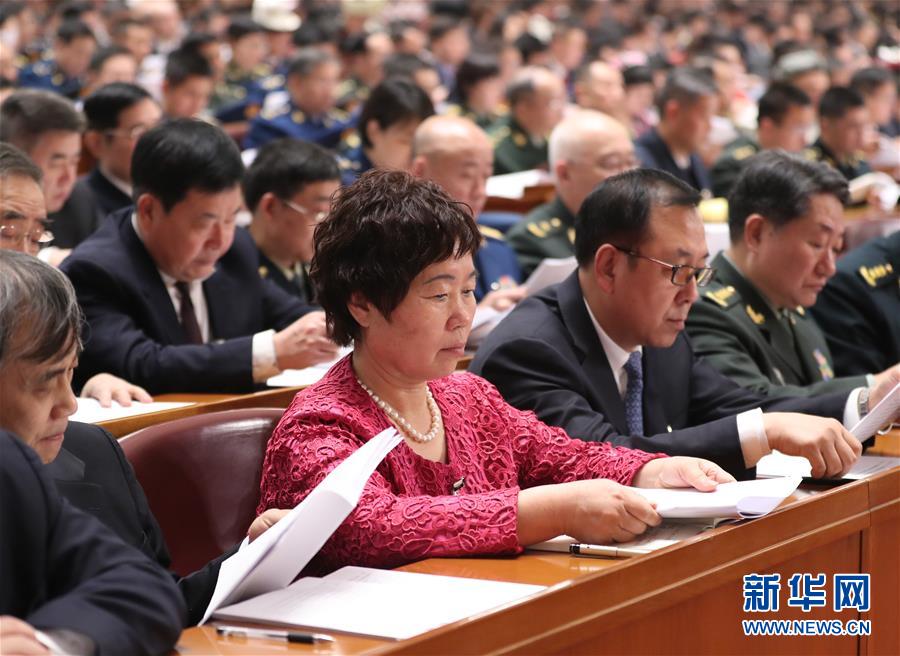 3月5日,杨宝玲(前左二)在北京人民大会堂出席十三届全国人大二次会议开幕会。 全国人大代表杨宝玲是天津市东丽区胡张庄村党总支书记。在她的带领下,胡张庄村致力发展现代化农业,村民居住条件得到极大改善,集体收入显著提升,实现了“农村转型”“农业转型”。杨宝玲说,她有一个梦想,希望借助政策支持,在村里建设乡村振兴示范区,发展田园综合体,让村民享受到更多乡村振兴战略带来的红利。 新华社记者 丁林 摄