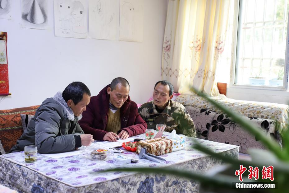 3月10日,张华(左)、张建(中)、张忠(右)在家里填写巡护记录,巡护工作结束后他们都会整理并填写巡护情况。张建、张忠、张华是孪生三兄弟,他们是贵州省毕节市七星关区拱拢坪国有林场的护林员。在父亲的影响下,1981年,初中毕业的张家三兄弟加入林场担任护林员,每天行走30余公里山路巡视看护林场,至今已有38年。如今,经营面积5.33万亩的拱拢坪林场在他们和同事的守护下越发青葱翠绿。据悉,贵州现有在册林场护林员3000余人,担负着555余万亩的林场的管护工作。中新社记者 瞿宏伦 摄
