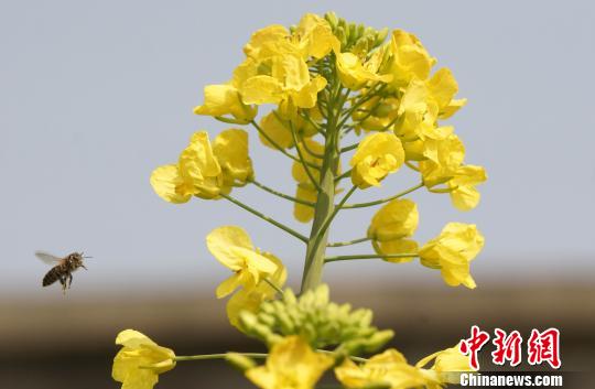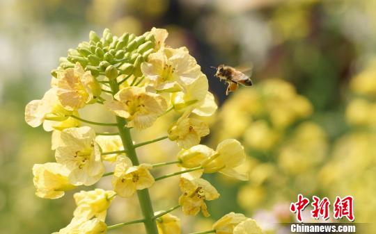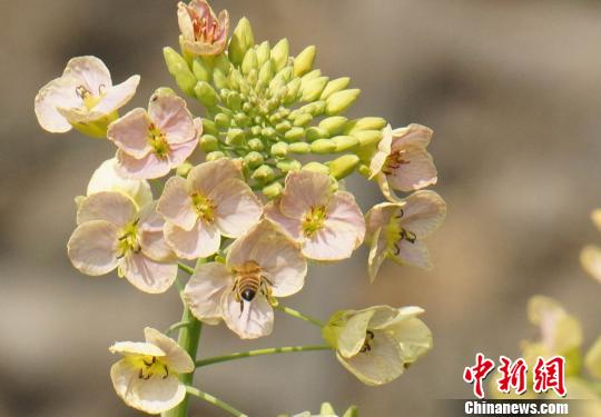 蜜蜂在彩色油菜花上飞舞。 王昊阳 摄