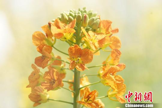 江西农业大学教授付东辉培育出的彩色油菜花。 王昊阳 摄