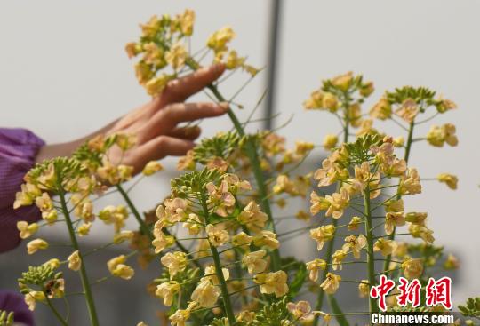 工作人员在为油菜花人工授粉。 王昊阳 摄