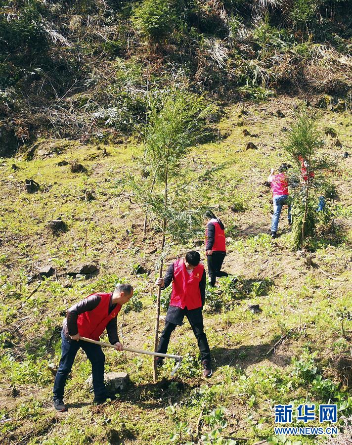3月12日,浙江省桐庐县合村乡三源村的党员干部在植树。 当日是植树节,各地举行多种形式的植树活动。 新华社发(徐军勇 摄)