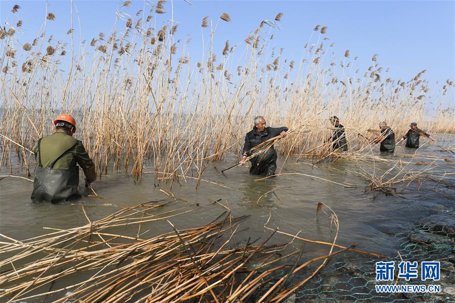 3月12日,工作人员在湖州市吴兴高新区太湖沿岸收割芦苇。 为做好太湖沿线生态修复工作,近日,浙江省湖州市吴兴高新区在辖区内对太湖沿岸干枯的芦苇进行收割,防止芦苇枯死对太湖形成污染。据悉,此次芦苇收割将持续一个月,并在4月底完成芦苇缺失部位的补种工作。 新华社记者翁忻旸摄