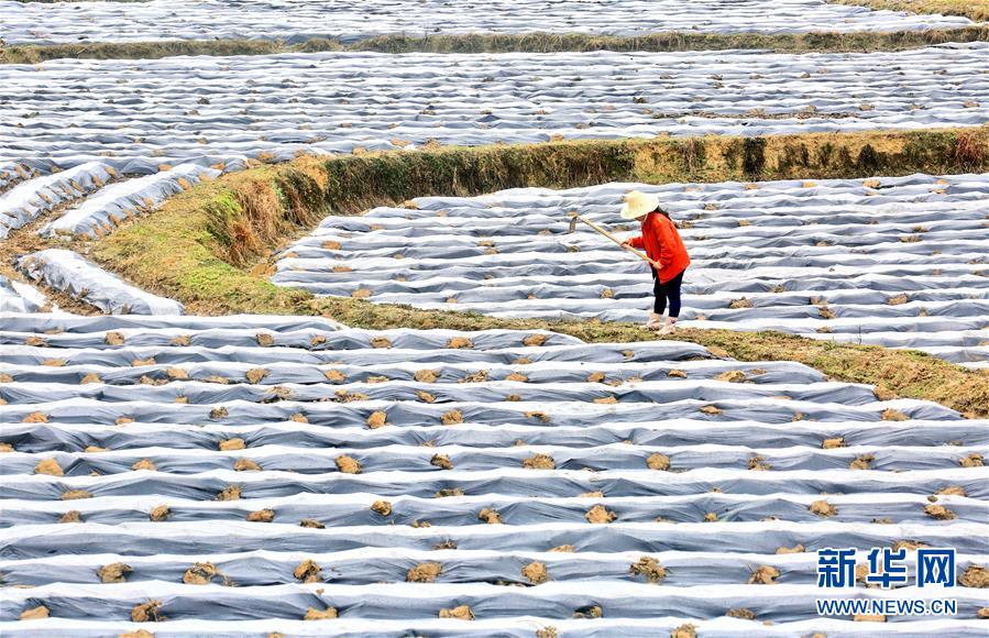 3月12日,在江西省吉安市永丰县潭城乡辋川村农民在田间劳作。 春回大地,人们纷纷投入到忙碌的生产劳动中。 新华社发(刘浩军 摄)
